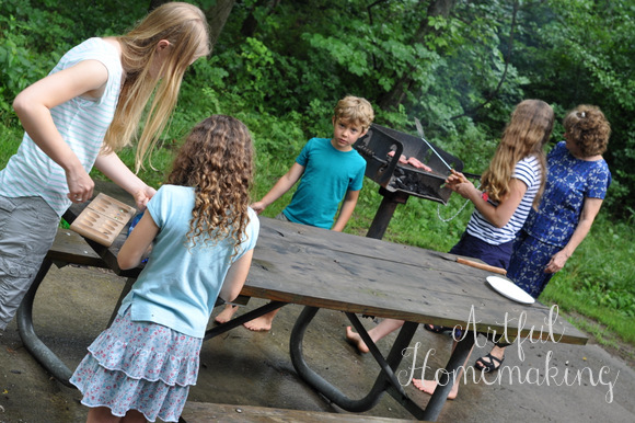 We made lots of happy memories during our camping trip: swimming, fishing, grilling hamburgers and roasting hot dogs, making s’mores, playing board games, and reading aloud.