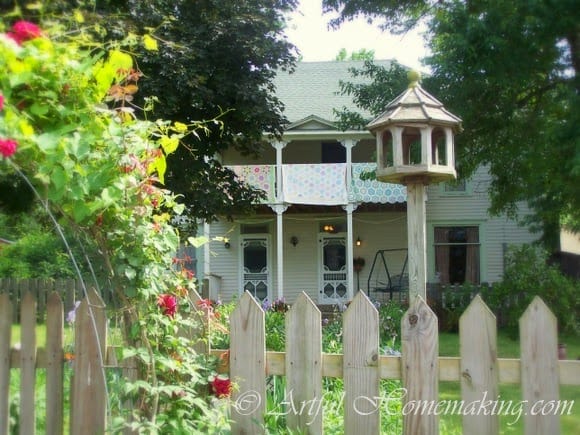 Oh! I loved this post, Joy! And your photos are amazing! I think I need to take lessons. 🙂 You have such a good eye for photography and knowing what makes a good photo . . . yours are also so crisp and clear, too. I love the photo you got of the house, roses and the quilts on the balcony. It is a beautiful scene! And one I enjoyed gazing at while we were there . . . the screen doors, Grandmother’s Flower Garden Quilts, the arbor with the roses . . . it was so homey and peaceful.