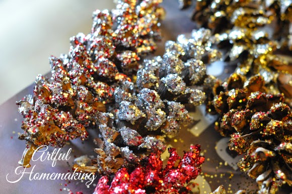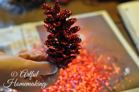 As I brought out the glue and glitter, I was amazed at how such a simple activity seemed to calm and refocus everyone. I think it helped that I didn’t have any objective other than making pine cones sparkly. We made a huge mess, and I’m pretty sure we’ll have glitter all over the kitchen for quite some time, but it was worth it to me. And now I have some glittered pine cones for the wreath I’m hoping to assemble tomorrow.