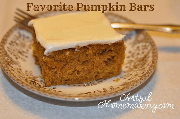 I think I better carve out a little time today to make those AMAZING pumpkin bars. Thanks for sharing your recipe. 🙂