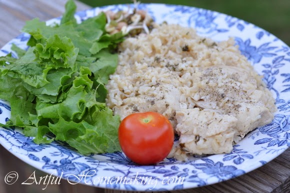 I’ve been making this simple chicken and rice dish for over 11 years. My midwife gave me the recipe when I was expecting my second child. It’s been a favorite for a long time. And it all cooks in one pot, so there are fewer dishes to wash!