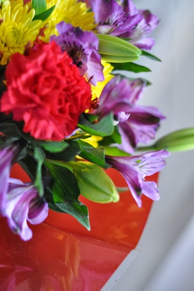 My husband always knows when I’m needing some encouragement–he brought me these flowers last week when he went grocery shopping (yes, he does the shopping, and I’m so grateful!). I totally LOVE that man! ♥