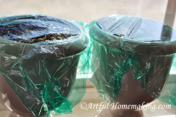 I covered these with some plastic wrap to produce a greenhouse effect, with the hope that they would sprout faster.