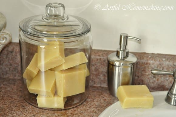 My first batch of soap is now ready to use, and we’ve been enjoying it. And marveling at the fact that I actually made this myself!