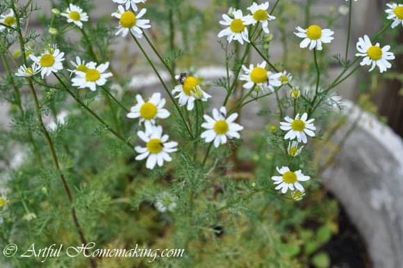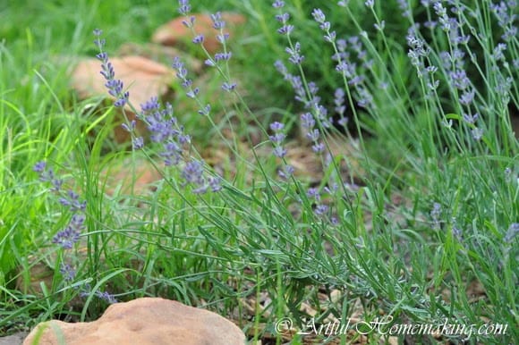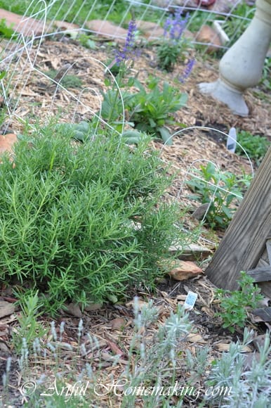 I have more herbs this year than I’ve ever had before. I have chamomile (started from seed last fall, so it’s ready to harvest already, and I’ve been harvesting it several times a week), rosemary (planted last year and now three times as big!), lavender (from a plant I moved here from our previous house, and I’ve also added several new plants), sweet basil, sage, oregano, bouquet dill, lemongrass, two stevia plants, parsley, echinacea (the ones my mom gave me last year apparently re-seeded, and we also planted more this year), chives, and three kinds of mint.