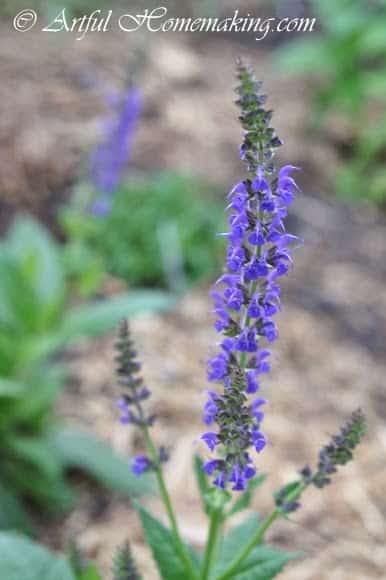 Some of the plants I have in the flower garden are: May Night Salvia, Tall Garden Phlox (purple), Pink Phlox, Pinks (Dianthus), Bee Balm, Creeping Thyme, Bachelor’s Buttons (my mom gave me these), and Veronica. I also planted some foxglove seeds, but I’m not sure if they’re going to make it, as they accidentally got stepped on (by a child this time).
