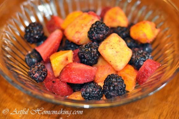 Monday’s lunch included a delicious fruit salad (made with frozen fruit and berries),