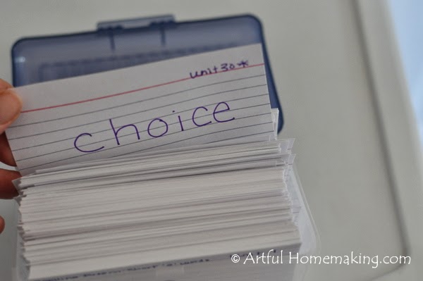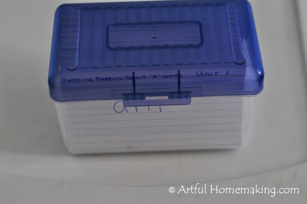 In an effort to be as organized as possible, I already made all of the 3×5 cards with spelling words on them. My hand was a bit sore after writing all those out!