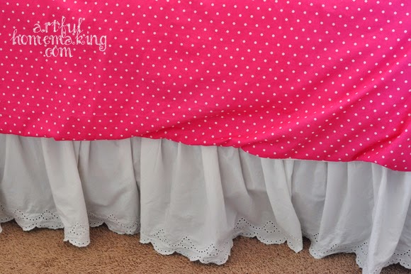You can see several of my inspiration photos on my Girls’ Bedroom Ideas Pinterest board. After seeing how much pink and green we already had, I started thinking pink polka dot duvet covers would be nice. And I found just what I had in mind at Pottery Barn. But the price was totally out of our budget.