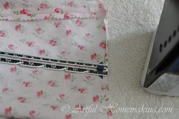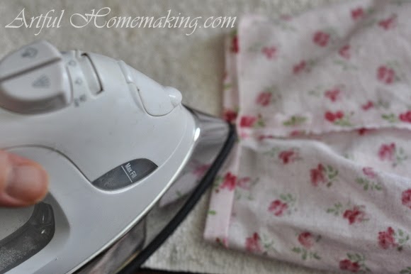 Turn under a second time 3/8″ and press (If you are using a different size elastic than 1/8″, you will need to adjust these measurements to make the correct casing size for the elastic):