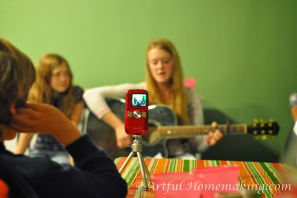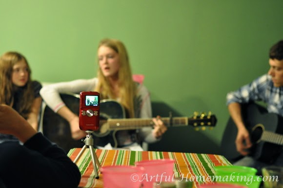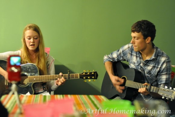 And later in the afternoon, the guitars were brought out and we enjoyed our two older daughters and their cousin making music together: