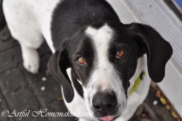 How could you resist these pleading eyes, begging you to let him inside the warm house? Actually, I’m able to resist, but the children aren’t.
