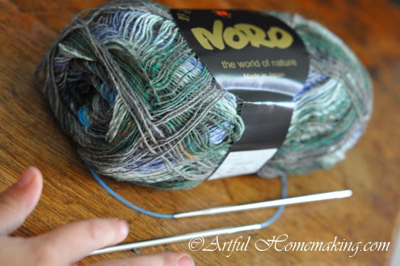 At nights after the children are in bed, I sometimes like to knit. I’ve started and ripped out my scarf/shawl about three times now. I finally asked my mom to help me, and I think she’s figured out what I was doing wrong, thankfully! So, I’ll begin again.