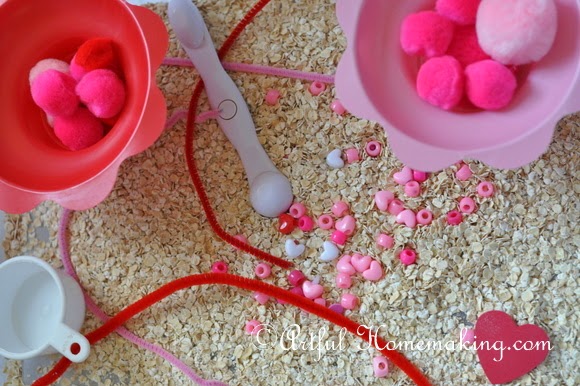 And to keep my youngest busy, I decided to make a Valentine’s sensory bin with a little container of quick oats someone gave us, and a few things from around the house. It’s amazing how such a simple idea can keep little ones busy for so long. This has already received a lot of use.
